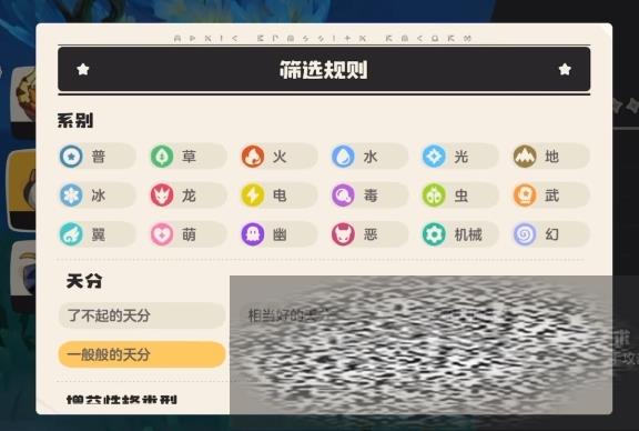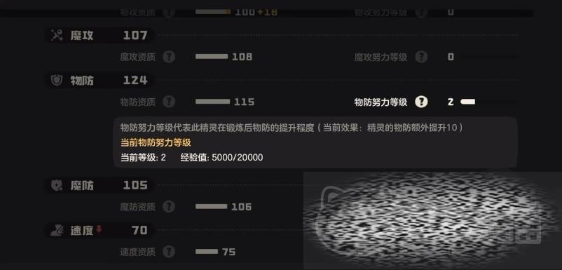 游戏中精灵的天分可以提供3项增益,性格增益和减益则各有1项可以更改,通常情况下,玩家会选择更改4项属性:3项天分增益加上1项性格增益或减益,这样可以使精灵在某一项属性上更加突出,同时减少另一项不太重要的属性,天分提供的三项增益可以使用道具进行更改,例如如果精灵原本是生命值、物攻和速度三项+10,大家可以使用道具将其更改为魔攻、物防和魔防三项+10,需要注意的是这些更改只能改变位置,而不能改变数值,因此本质上仍然需要依靠运气来捕捉到三项+10的个体,个体值的差异非常大,尤其是没有星星和满星星的个体值之间的差异更大。
