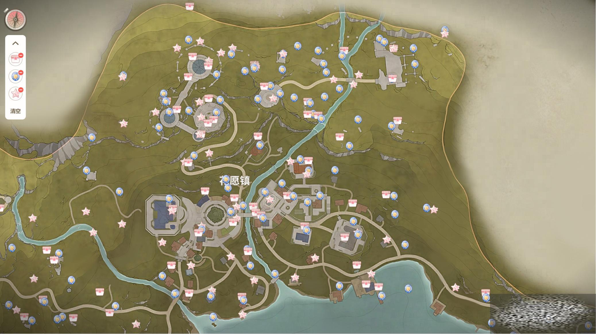 说完了这些东西的获取方式,那么接下来小编就给大家讲讲花园镇的各个收集点吧!粉色的星星图标对应的就是奇想星的位置,蓝色小水珠对应的则是灵感露珠的位置,至于宝箱的位置想必就不用小编多说啦。在花园镇中一共有67颗奇想星和302颗灵感露珠隐藏在花园镇的各个角落,大家可以根据地图上的点位去寻找哦!