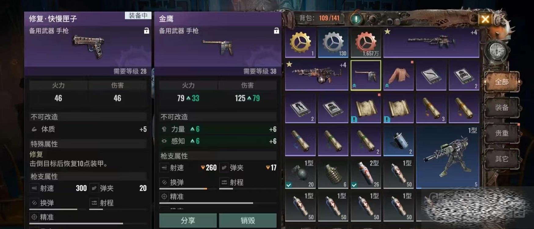 首先来到三斧盟的大堂,找到盛兰跟他们一起出发,先和旁边的二首领对话一下,领取给予大家的奖励,给了一把非常出色的武器金鹰手枪,还有一个礼盒。在进行对话之后就可以去完成任务了,38级的武器属性还是非常强大的,礼盒中也可以开出齿轮、燃烧弹等战斗道具,接下来的战斗中也可以使用。