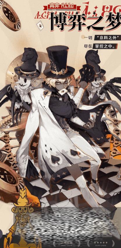 博弈之梦的名字是高弈,他的普攻是三段式的攻击,前面两段是每次扔出三张牌,第三段丢出五张牌以及一张戏法牌,纸牌可以弹射两次造成伤害并在命中时给目标施加一个标记,他的生存技会向前快速移动一段距离,同时在原地留下一个残影,当纸牌和王牌找不到弹射目标的时候,会以残影作为中转弹射一次,他的特性技会丢出王牌攻击目标,王牌会弹射三次如果命中有标记的目标,会额外产生一张戏法纸牌。