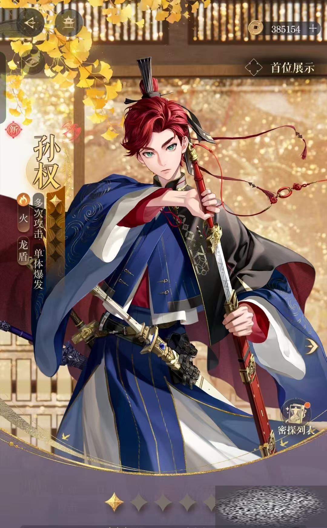 在游戏中孙权这个角色拥有两个流派的玩法,分别是剑权也就是攻击流玩法,还有一种就是盾权。在前期小伙伴们资源和材料不多的时候推荐玩家玩盾权,不同的流派玩法在对角色进行星石的准备就要有所区别。