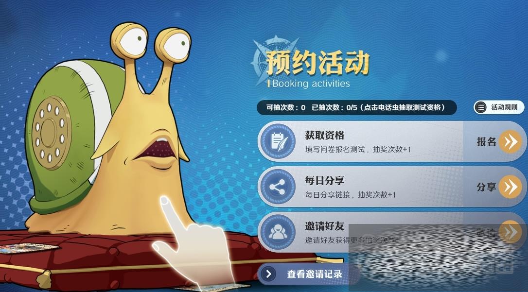 游戏测试资格的获得就是靠抽奖来获得,建议玩家攒够抽奖次数后再来一次性抽取,可能抽取获得的概率会高一些。