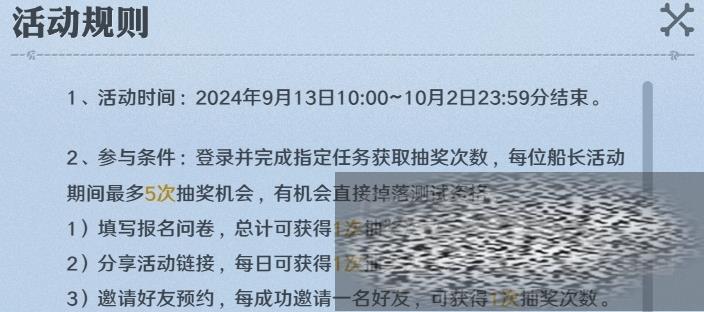 本次游戏的测试资格是通过抽奖这个方式来获得的,那么具体的规则有哪些: