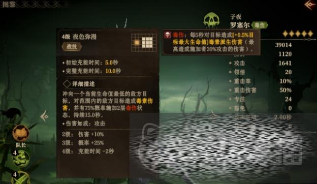 作为罗赛尔的核心输出技能之一,夜色弥漫可以锁定场上血量最低的敌人,并以其为中心造成范围性毒素打击。不仅如此,被波及的目标还有一定几率陷入毒伤状态。这一技能在多敌人的情况下,能够让罗赛尔快速切换目标,从而在战场上灵活应对多种局面,减轻队友的输出压力。