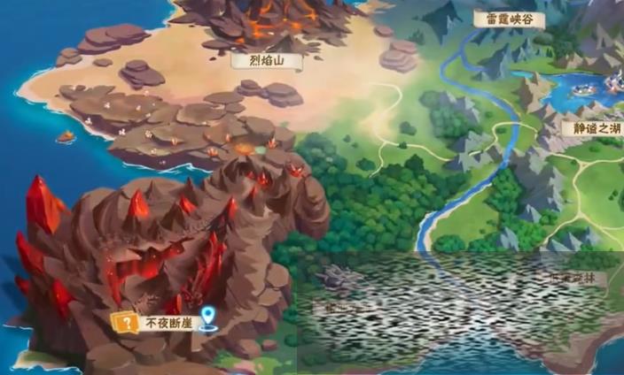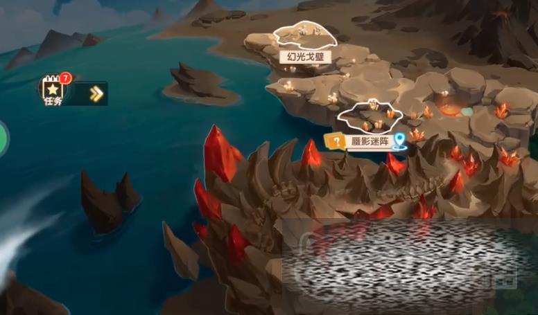 想要领取不夜断崖这个任务的话,可以先来到主页,在主页的左侧会有一个任务栏,打开任务栏之后里面就能弹出不液断崖的任务,领取之后系统就会指引玩家去往地图中寻找这个地点,通过地图快速穿越到这个地点之后,可以看到周围到处都是红色的火山,来到这里之后,首先能看到第一个场景,玩家需要破解幻象组成的迷阵,这些迷阵是不具有攻击性的,玩家需要静下心来利用这些红光和紫光快速找到出口。