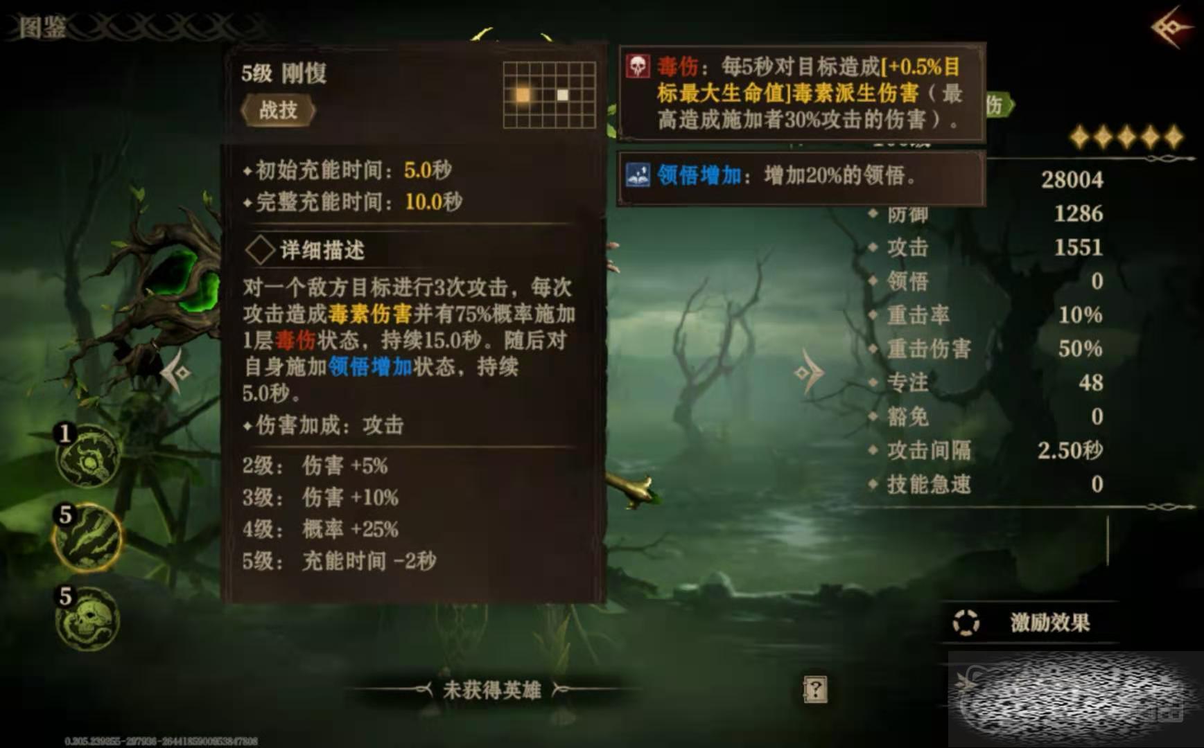 刚愎这个战技可以给目标造成很高的伤害,释放之后会连续完成三次攻击,期间还有概率使目标进入到毒伤状态,自身的领悟属性也会随着攻击增加。