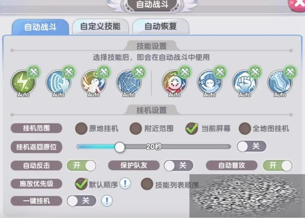 首先大家需要先进行挂机的设置,比如说需要去设置挂机的范围以及挂机所返回的位置。在进行设计的时候,大家需要规划好时间以及需要选择是否需要自动反击和保护队友。如果是大家不进行设置的话,就首先按照默认的顺序进行释放了,而且大家还可以点击自动攻击和自动普攻。
