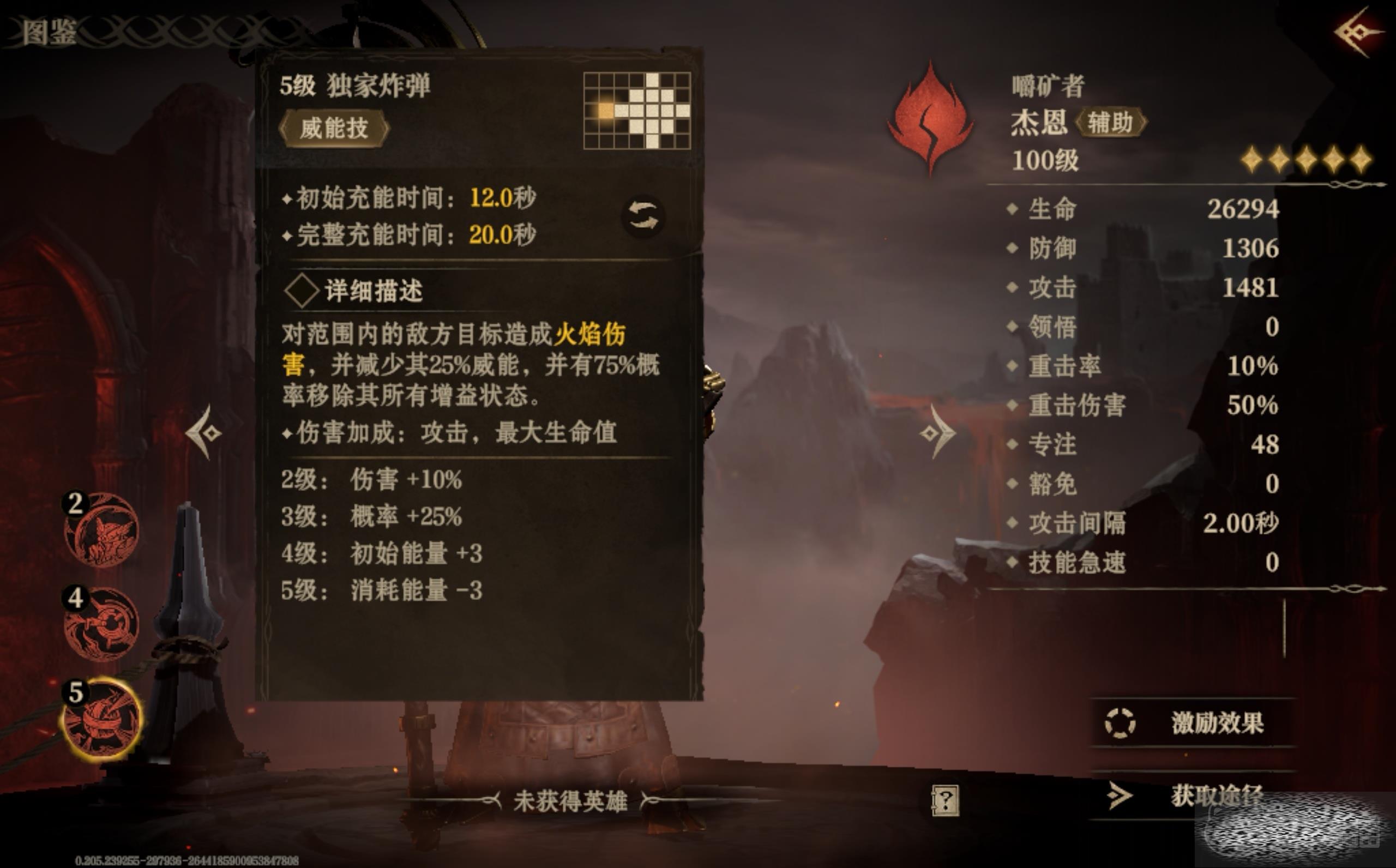 杰恩最终的威能技需要到五级才能获取,这项技能叫做独家炸弹,可以对一个范围内的敌人造成攻击,被这招命中的目标不仅会遭受火焰伤害,自己之前所积攒下来的威能也会被减少,当前所拥有的增益也会有几率被移除,技能升到三级之后,再去使用这个招数,就可以直接将对手的增益去除。