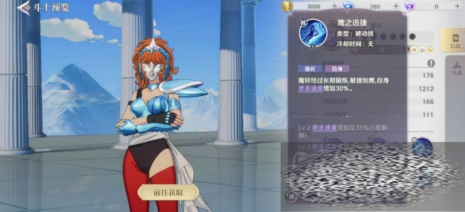 另一个被动技鹰之迅捷则能够增加魔铃的攻击速度,使她的攻击更加迅猛,这个技能的效果也随着星级的提升而增强,最高可将攻击速度增加至40%,最高的时候攻击速度会增加至40%,这个百分比的效果会在角色7星的时候解锁。