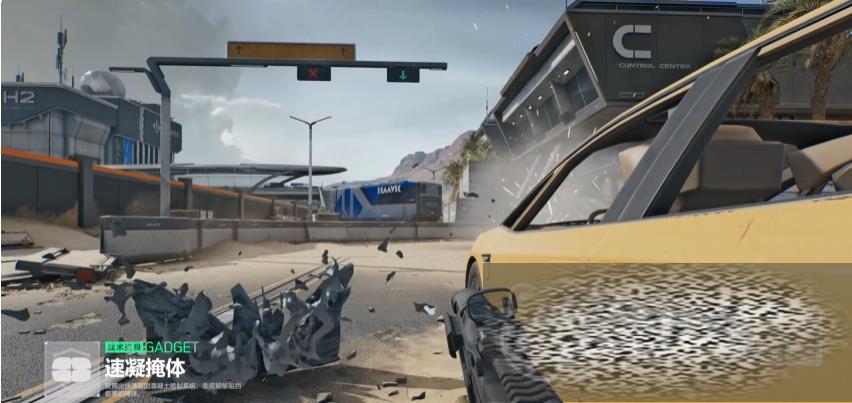 他能使用的战术道具是”速凝掩体”,可以将凝固的混凝土喷射系统扔到指定的位置,从而生成掩体,该掩体可以抵挡伤害,这个战术道具可以帮助他迅速的搭建临时的防御工事,从而成为移动堡垒,也方便进行远距离打击任务。