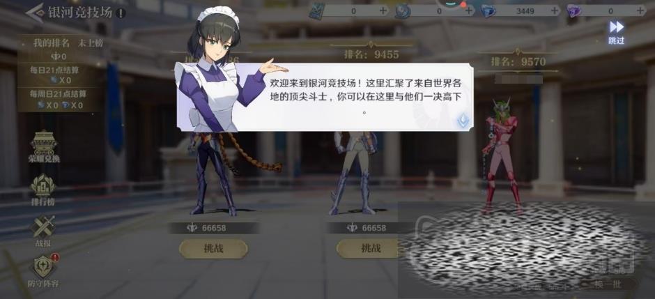银河竞技场:参与这个玩法当玩家在银河竞技场中战胜排名高于自己的对手时,可以互换排名,采用自动战斗模式,每位战士的战术布局和角色搭配将在无形中决定胜负,这一点大家可以关注一下战力数值的比拼,每位玩家每天拥有五次免费的挑战机会,通过花费蓝钻额外购买挑战次数也可以,也为玩家提供了更多攀登排行榜的机会,休赛期这段时间虽然是挑战的空白期,就是大家优化阵容的宝贵时机,大家将根据最终排名获得丰厚的战斗结算奖励哦,而对于那些能够跻身本服排行榜前十的玩家来说,还有额外的奖励等待领取。