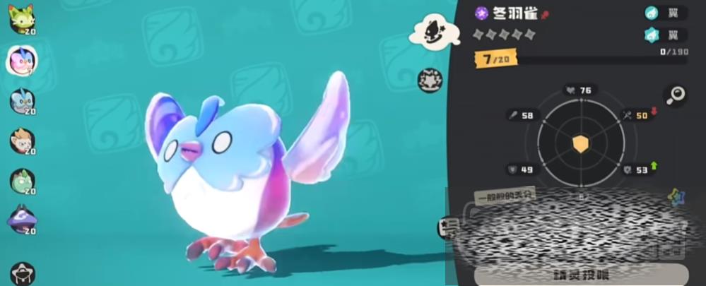 在强度方面,冬羽雀虽然不是顶级的战斗精灵,但其均衡的属性和成长潜力使得它在初期至中期游戏中都能发挥重要作用。冬羽雀的速度和特攻属性较为突出,适合快速出手并给予对手有效打击。同时,其不错的生命值和防御力也保证了在战斗中的生存能力。在合理的技能搭配下,冬羽雀能够成为玩家队伍中的多面手,无论是单体输出还是群体控制都能有所作为。
