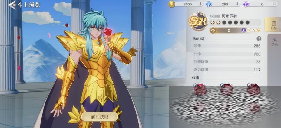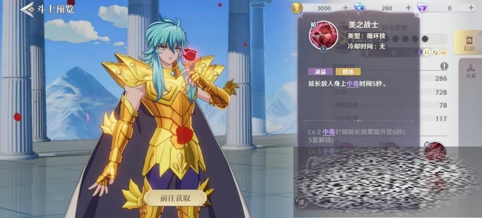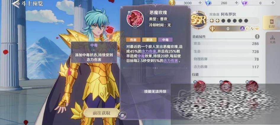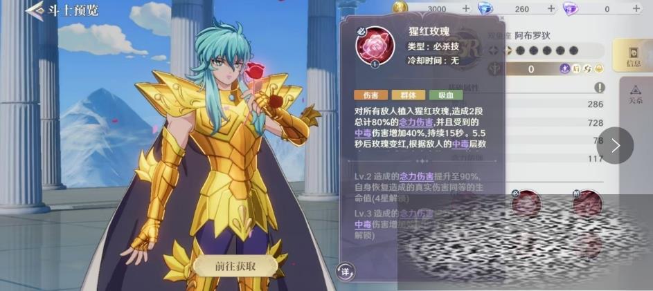 圣斗士星矢重生2双鱼座斗士是谁大家知道吗?如果大家有看过原著,其实在游戏中也是可以找到原著当中熟悉的圣斗士们,在游戏中双鱼座斗士就是阿布罗狄,他被定位为中排物理辅助角色,他不仅具备对植物毒性的抗性,还拥有独特的能力,大家可以通过下面的介绍来一起查看这个角色的效果哦。