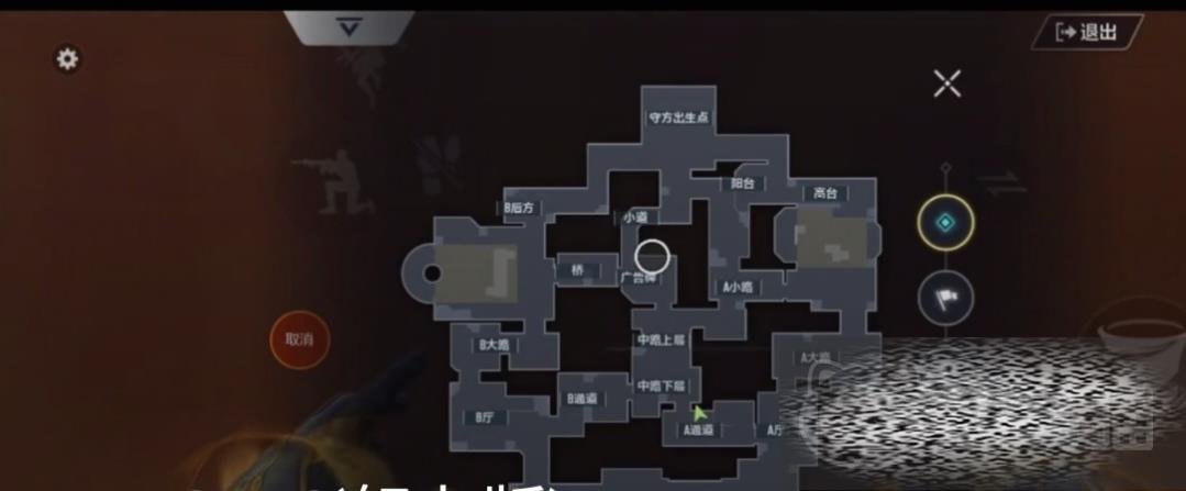 说完进攻方的需要注意的点位以后,接下来在带大家来看一看防守方的点位,我们可以先从定包点出发,到了A大路前厅的位置,大家可以在这里观察一下敌人的动向,如果听到有敌人的脚步声那就赶快放一个烟,这以直接把烟放到A大路的上方,a大路的点位在了解清楚后,在来看一下中路的点位,为了避免敌方偷袭,大家可以在地图找到中路下层的点位,可以具体的把位置订到A通道这一边,放一个烟,这个烟可以很好的防止敌方的进攻。