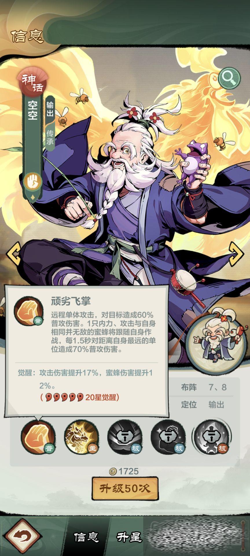 顽劣飞掌这个技能是一个远程单体攻击技能,这个技能对目标会造成60%的伤害,此外,空空这个角色在出战的时候身边还会有一只蜜蜂跟随着。