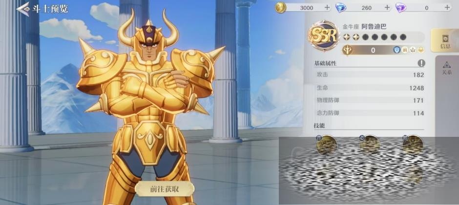 金牛座阿鲁迪巴是一个SSR角色,阿鲁迪巴的战斗风格以防御为主,他能够对最近的敌人造成物理伤害,并有一定的概率击退敌人一小段距离,当阿鲁迪巴处于居合姿态时,他的攻击力得到进一步强化,他能够对自身前方范围内的敌人造成更高的物理伤害,并同样有概率击退敌人,这种强化后的攻击,使得阿鲁迪巴在战斗中更加致命。