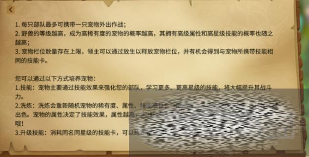 这里还需要注意的是,由于在爱对战的时候,每一个队伍最多只能携带一个宠物进行对战,而且野兽的等级高的话,那么去洗练时,宠物的稀有度也会越高,但是这个是概率问题,通杀这个宠物的数量是要上线的,玩家们在收集满宠物的时候,可以选择通过放生的方式,去放生一些评级较低的宠物,而且在放生后,是要概率可以获得相关宠物所携带的技能,这个设计就非常的值得大家去进行尝试了!前期在洗练道具不够的情况下可以多多去收集低阶宠物!