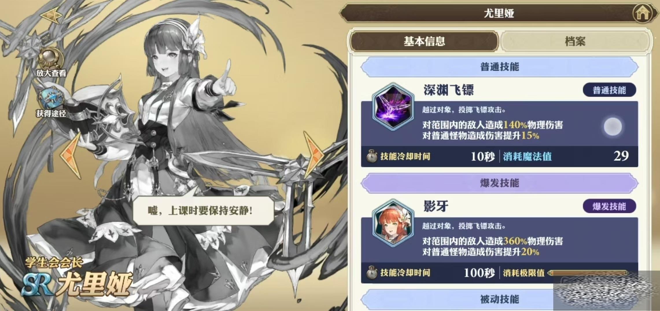 在尤里娅很小的时候就拥有出众的魔法天赋,他的父母在家庭贫穷的情况下,依然让他加入了魔法学校学习,所以魔法天赋得以光芒四射,今天小编来给大家分析一下剑与骑士团尤里娅好用吗。虽然在学校中受到了不正当的待遇,但开朗乐观的尤里娅并没有屈服,凭借优异的成绩成为大家认可的学生会长。