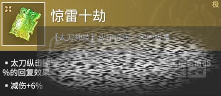 惊雷十劫能让太刀的惊雷一闪招式产生变化,这个招式在命中敌人后还能得到自身伤害65%的回复效果,减少6%伤害。