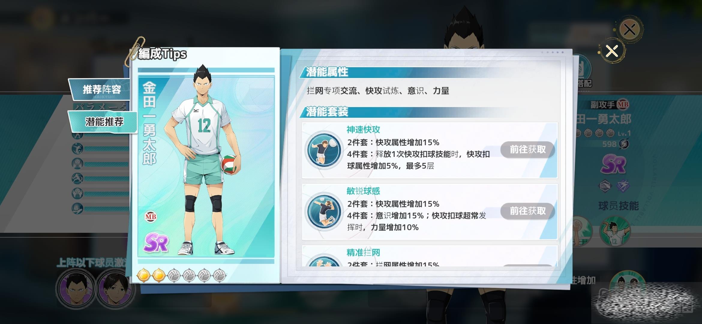 关于排球少年手游金田一勇太郎技能强度目前到这里就介绍完了,如果小伙伴们主玩青叶城西队的话,它是必不可少的一个存在,十连抽出他的概率很高,记得适当培养即可。