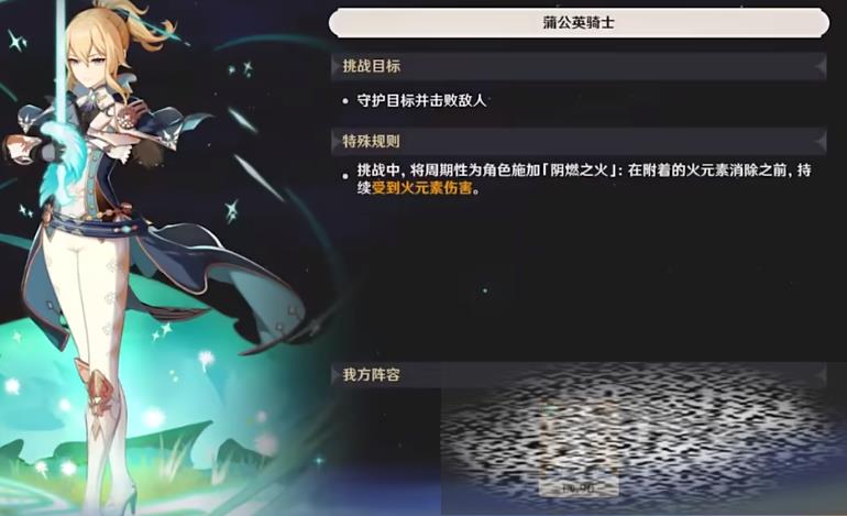 凝光需要达成的是守护目标并且击败敌人,琴和凝光的挑战目标是一样的,只不过需要在对战过程中给角色施加阴燃之火,在火元素消失之前需要持续的受到火元素的伤害。