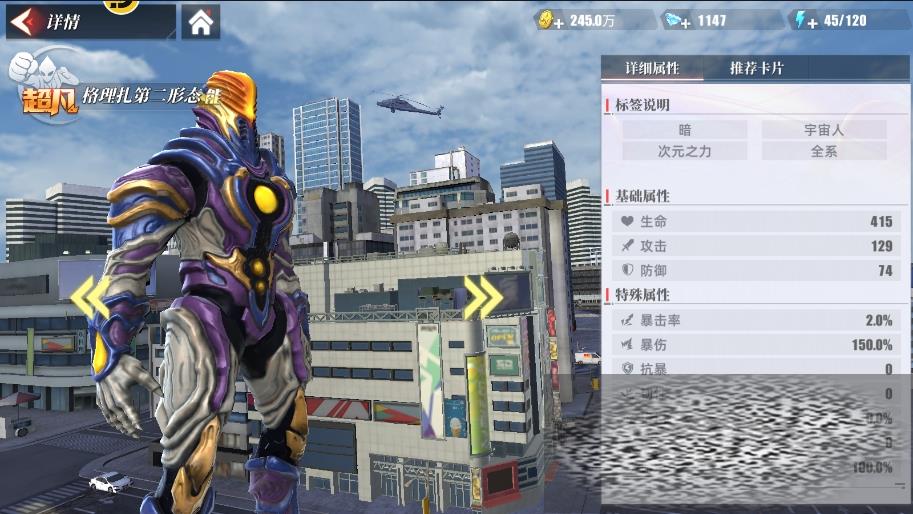 格理扎的第二形态毕竟在游戏中被定位为史诗级别的角色,所以整体的强度肯定是有的,这个品质的角色通常也都是作为核心输出使用的,他的吸收技能其实是远程攻击,需要在积攒满200点怒气后才能使用,一旦启动就能带来危险的能量输出,相比物理输出要高得多,但是因为伤害很高,所以这个技能注定冷却的时间就超级长,但是想要对敌人造成极高的伤害,大家还是要用到这个技能。