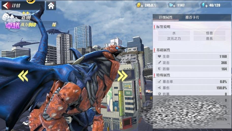 赛刚在游戏中被归类为紫色品质的角色,卓越的品质在前期还是不错的,后期培养一下也是可以助战的,这个角色展现出的技能组合不仅满足了玩家的输出,还主要是近战优势,所以很多对战中都是可以试用的,外观上面有点类似远古翼龙,但是它的手是没有手指的,手掌张开就是两排锋利的牙齿,在战斗中输出的时候它一般都是利用双手来进行输出。