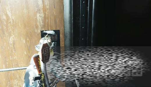 接着,乘坐电梯直达顶楼。到达顶楼后右转进入玻璃房区域,这里仿佛迷宫一般。按照指示前进,先不要急于进入任何一个房间,而是通过一系列的右转和左转,最终进入一个特定的玻璃房内,那里藏有一个武器箱。