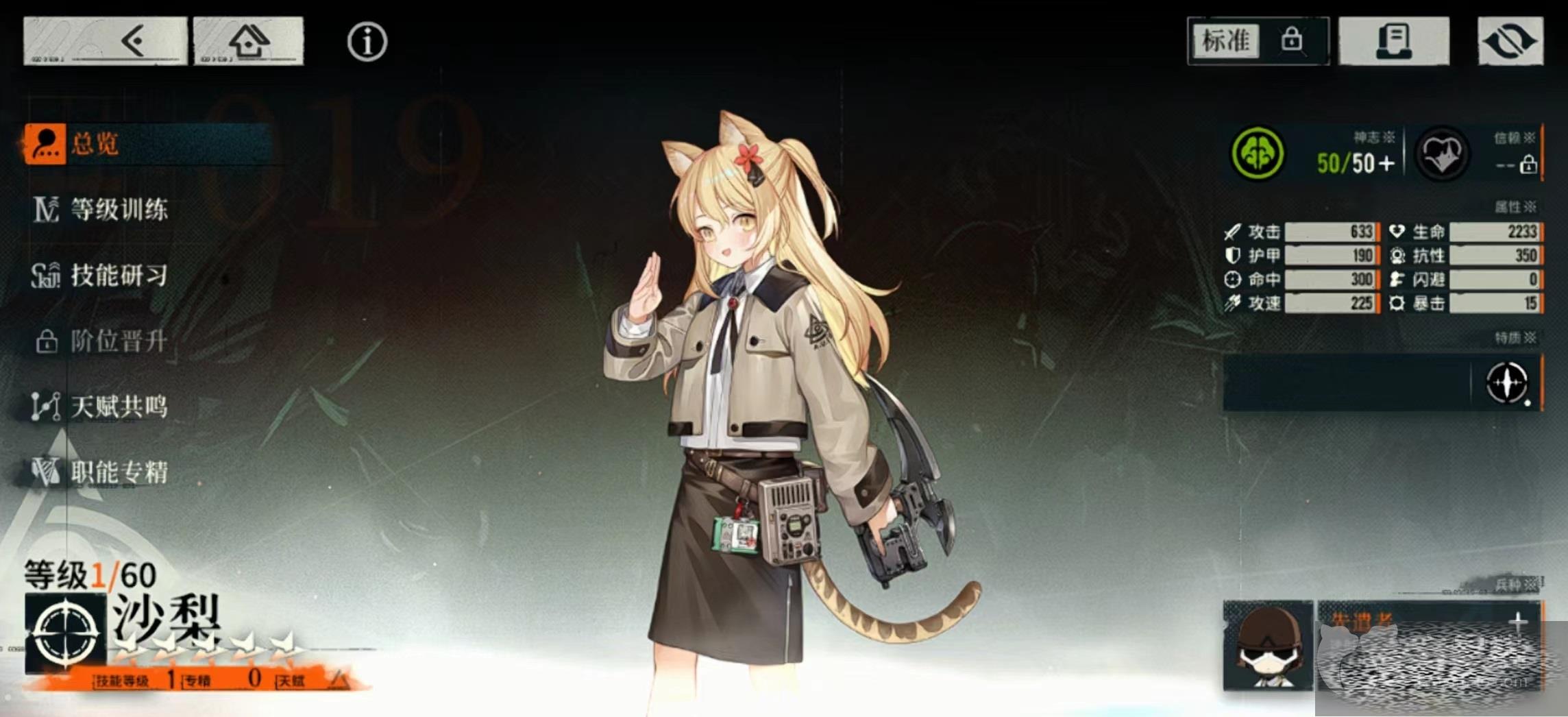 所携带的兵种为先遣者,就作为速射型远程兵种,会投掷闪光弹干扰敌方目标,每隔30秒就能投掷一枚闪光弹,降低敌方命中,减少我方受到伤害。自身在战斗中拥有主动沙梨鼓劲和被动发现破绽这两项。主动沙梨鼓劲开启之后增加小队成员99%伤害加成,持续10秒钟。在初始阶段就已经非常给力,进阶到二阶以后替换为新效果,加成达到108%,并且可以将小体型敌人直接击退。