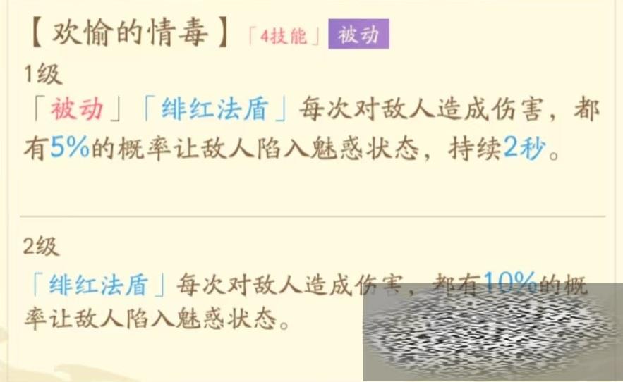 最后一个技能为加强绯红法盾属性,每次对敌人造成伤害时都有很少几率使敌方陷入魅惑状态。通过提高技能等级,触发几率能提升至15%,一旦成功触发将持续两秒钟。魅惑也是限制技能的一种,会使对方不分敌我双方目标。这些都是建立在法盾基础上,但是该盾对目标能够造成何种输出依然是未知数,所以小编并不看好。