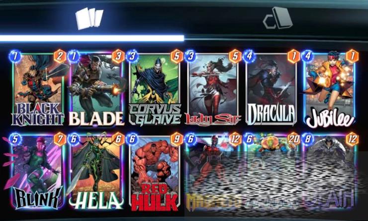 上文中所列举出的牌组是初级海拉牌组,接下来再为小伙伴们介绍一下终极版,比较适合喜欢高风险高收益的玩家们。在上文中提到的卡牌的基础下,再加入亡刃将军、黑骑士、闪烁和红浩克。黑骑士的存在主要是为了获得高战力黑剑,闪烁则是用来获取战力差,而红浩克目前在游戏里算是版本t0的存在,战斗力之高属于是必带的。