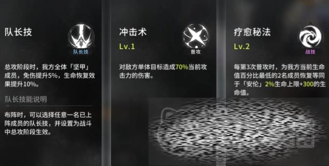 队长技能更让人竖起大拇指,在整体攻击阶段,可以给乙方全体成员提升15%的生命恢复。