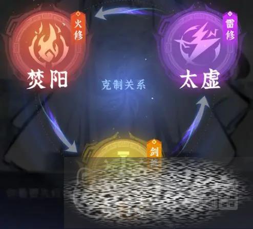 开局的流派选择当然也是重中之重。有三种不同的可挑选,分别是剑、雷、火。这个选择的是否适合个人对于后续发展影响比较大,但是对三种不同流派来说没有绝对的强弱区分的,它们之间互相克制,图中也会展示。剑修的特点就是破防后造成真伤,攻击直接无视对手护盾,展开斩杀,简单粗暴的流派;雷修的主要特点就是增伤爆发,战斗时可通过各种招式提升角色伤害,不管是单挑或者群体攻击效果都非常显著。