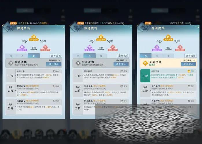 神通的选择对实力提升帮助很大,对于选择的流派不一样,搭配也是不同的,初期的各种物品道具比较紧缺,尽量有啥就用啥的,初期不要挑剔。那么还算充足的情况下,火修可选择4离火外加2天炉,4离火是优先去凑齐的,每多装备1个,对目标持续灼烧伤害就提高10%,伤害就能得到极致的增强。雷修建议考虑4天雷、2神霄,天雷是优先去凑的,能让落雷伤害提高100%,适配度非常高。剑修的话比较推荐4重光、2伏龙,重光可无视护盾效果,伏龙能增伤,面对生命值非常高的敌人也能轻松击溃。