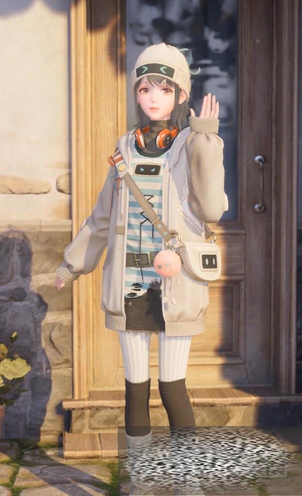 第二套“暖绒行动”,这套就和它的名字一样,整体看起来就暖融融的,非常温暖的套装,白色是主色调,搭配一些粉色绿色的元素点缀,画龙点睛,让服装温暖的同时也具有活力,非常适合初秋的一套搭配。