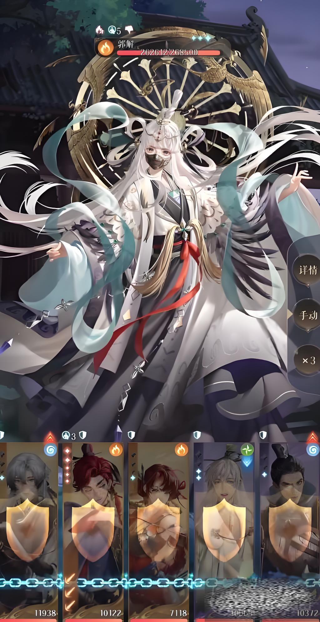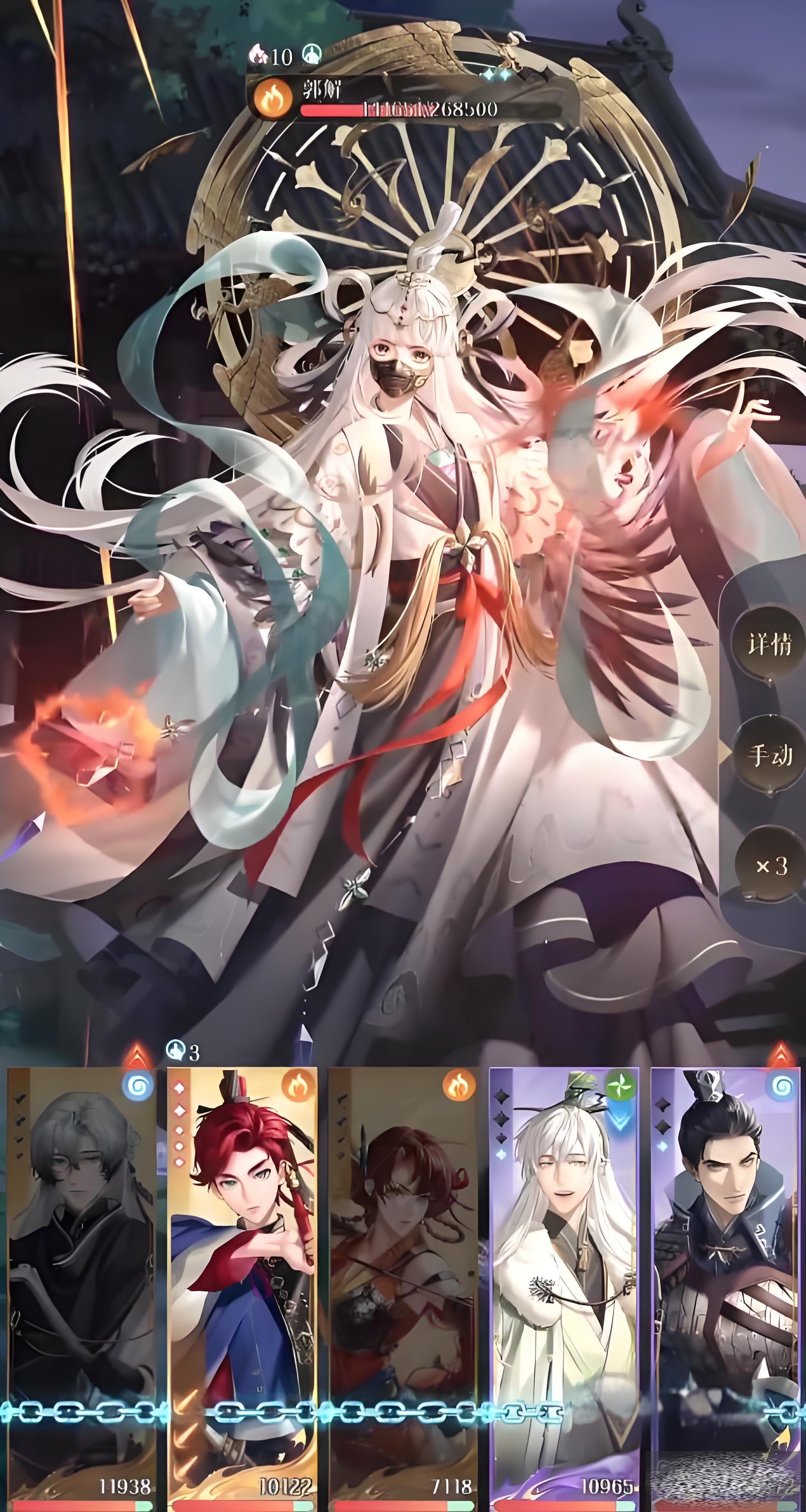 她的特性是受到伤害会反击,每回合有三次,在敌方打出一整个行动时,郭解会获得一回合的免伤值,她还有护盾加身,防御很厉害但是她血量低至50%就会退场。本关限制密探等级到40级,相应的密探全体水、火属性抗性提升20。