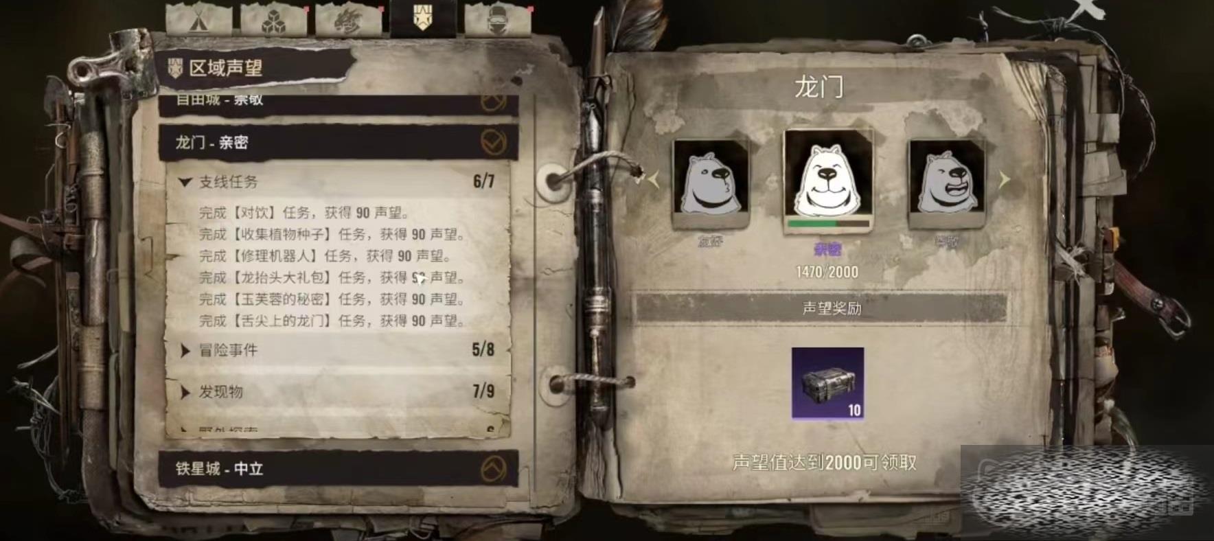 然后回来和刘大庆对话,完成这个支线任务,将会给予龙门声望奖励。这里因为没有奖励大家经验,所以很多软件认为系统比较抠门,事实并非如此。龙门声望是非常有用的奖励,帮助大家快速提升对龙门地区的声望,完成这里面的支线都可以获得对应声望值。声望每达到一定级别,都会给大家赠送奖励,包括友好、亲密、尊敬等,主要通过任务来获得,减少了大家去频繁刷声望的时间。