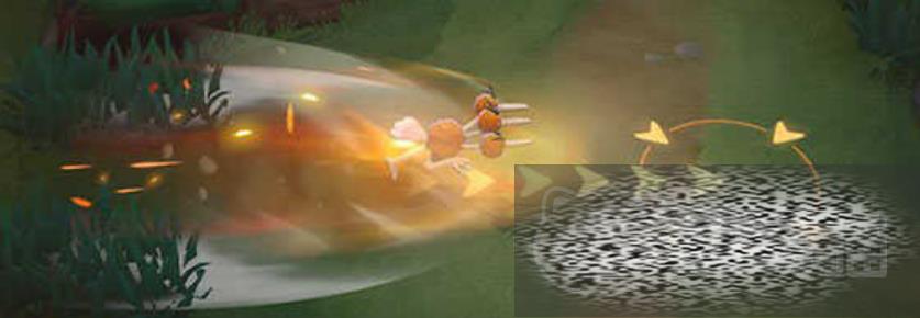 特性“逃跑”,这是它在游戏和动画中经常使用的招式,在大集结里则是被动,效果是当它处于敌方半径范围内的时候移速提升10%,并且移动的时候会有一个能量计数,从0到10,冲刺能量表满的时候,它的移速会进一步提升。