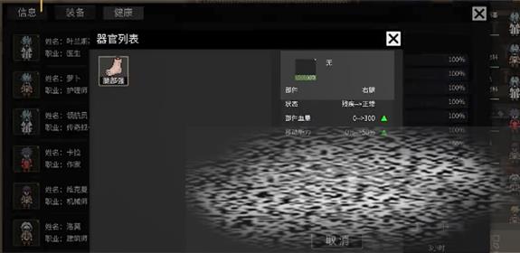 人物在残疾之后,玩家只需要进入到健康界面,然后点击就可以自由的更换身体组件。当然玩家需要保证身体主见早已进入到新的储存区,人物还需要有医疗设施以及医务室、一位医生可以用来完成手术。