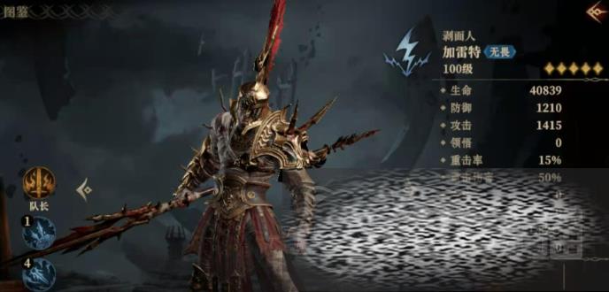 传说英雄加雷特的定位是无畏,他的队长技能在所有战斗中提升所有队友30%的重击伤害,他的被动能在受到伤害的时候增加自身的攻击力,增加的量等同于所受伤害的10%,这个被动效果能得到的攻击上限是自身基础攻击的200%,他的战技师对一个地方目标发动三次戳刺,每次会消耗2.5%的当前生命值,并对目标造成超高的闪电伤害,他的威能技会消耗7%的当前生命值,从而获得10秒的残虐突刺状态,在该状态下会突进到敌人的身前进行5次戳刺攻击,每次攻击都会追加65%的闪电伤害,而且自身每获得1%的攻击速度也会让伤害值提升0.25%。