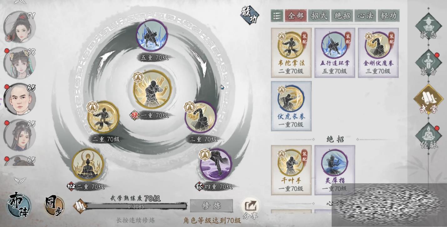 如果大家角色前排不够肉的话可以将小福换成和尚,和尚比较能抗伤害,也会比较肉,并且也有多种减伤的技能,还有护体真气。这一套阵容的伤害总体来说是比较低的,而且比较看重技能的等级,对于平民玩家来说不是特别推荐,但如果你是氪金玩家那就随意啦。