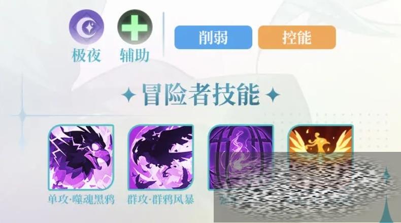 虽然作为群体伤害技能它的表现并不十分出色,特别是在敌人数量众多时,但由于伤害被均摊,每个单位受到的实际伤害相对较小,然而在实际应用中,真正的威力在于针对少数敌人进行集中输出,这样不仅能够避免伤害上限的限制,还能在战斗后期有效地清除场上剩余的敌人,此外黑鸦富腾的第三项技能叫做影之眷属,更是让她在对抗带有负面状态的敌人时有独特的压制效果。