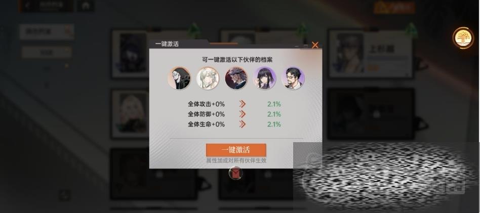 值得注意的是,获得的炼金武器技能最初都是初阶效果,但是如果有两个完全相同且相邻的炼金武器技能,它们可以自动将初阶效果升级为高阶效果,除了炼金武器,伙伴档案也是一个重要的加成方式,每当获取一个新的伙伴时,就可以在系统中激活该伙伴的档案,解锁一个角色档案不仅可以带来全体攻击、防御和生命的加成,还可以通过一键解锁的方式快速获取多个伙伴的加成效果。