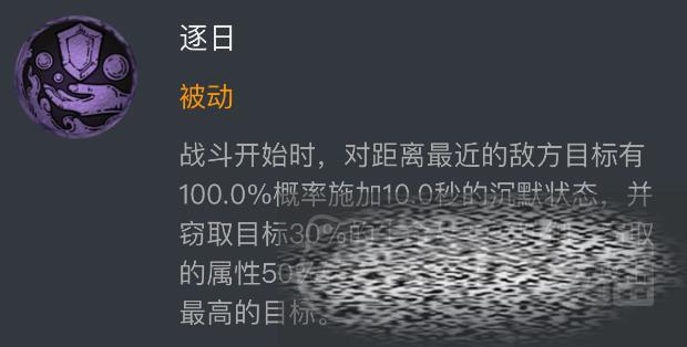 阿斯塔恩的三技能被动逐日在战斗开始时,就可以让距离最近的敌人沉默十秒,并且还可以窃取敌人身上百分之三十的生命值和百分之三十的防御值,这个窃取属性的百分之五十还可以转移给攻击力最高的友方目标。