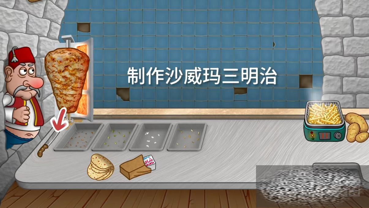 另外玩家在开始游戏第一天的时候,就是需要学会制作沙威玛三明治,而客人则是会在我们做好了第一个三明治时就会光临,在客人成功买走三明治之后就会给我们金币,这个金币需要我们手动点击领取哦。