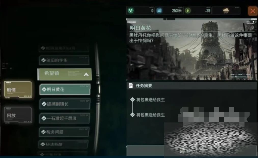 穿越希望镇周围的荒地,最好不要打怪我们直接跑就好了。直至找到位于矿工营地深处的良生。与良生简短交流后,玩家将完成包裹的交付,同时也会揭开一段温情的背景故事。