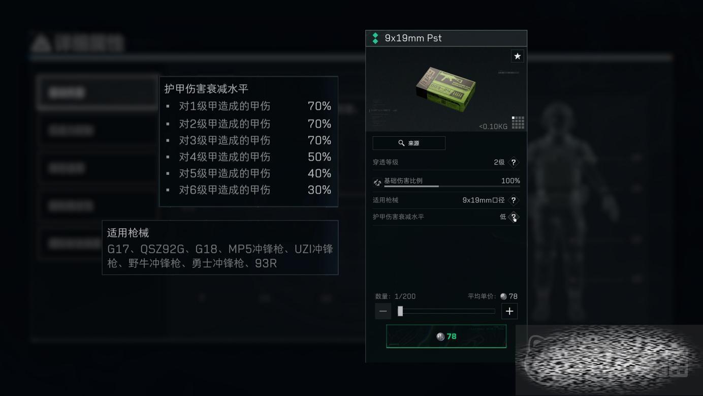 游戏中的弹药都分为不同的穿透级别,大部分口径的弹药都在零级到六级之间,少部分武器拥有七级的弹药传统级别,他们可以直接穿透比自身等级低的防具来造成全额的伤害,玩家们了解肉弹的效果,对于自身的攻击强度还是很有帮助的,就比如说9×19毫米的三级穿甲弹,就是这个非常好的肉弹他可以对护甲造成甲伤,同时还可以击穿护甲,直接对敌人造成全额的肉体伤害。