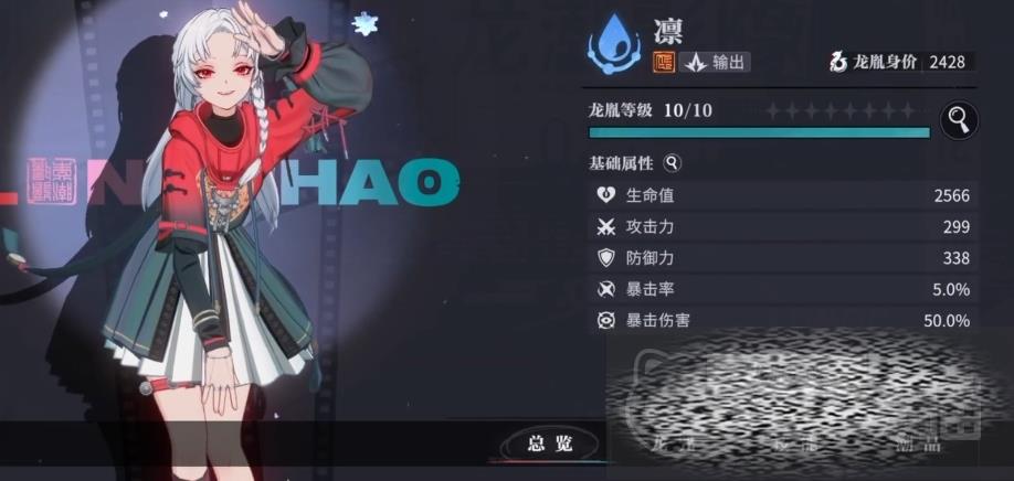 凛,这个角色的技能组合包括凝华、归龙、咒术、魂术和冲击等,这些技能使得他能够在战斗中造成多段水属性伤害,并且通过积攒霜能来增强自己的攻击能力,凛的技能搭配建议包括与胤痕的阶段提升相结合,以及在适当的时候使用雪蝶回旋来造成更高的伤害,这种技能搭配不仅能够提高凛的伤害输出,还能够增加其在战斗中的灵活性。