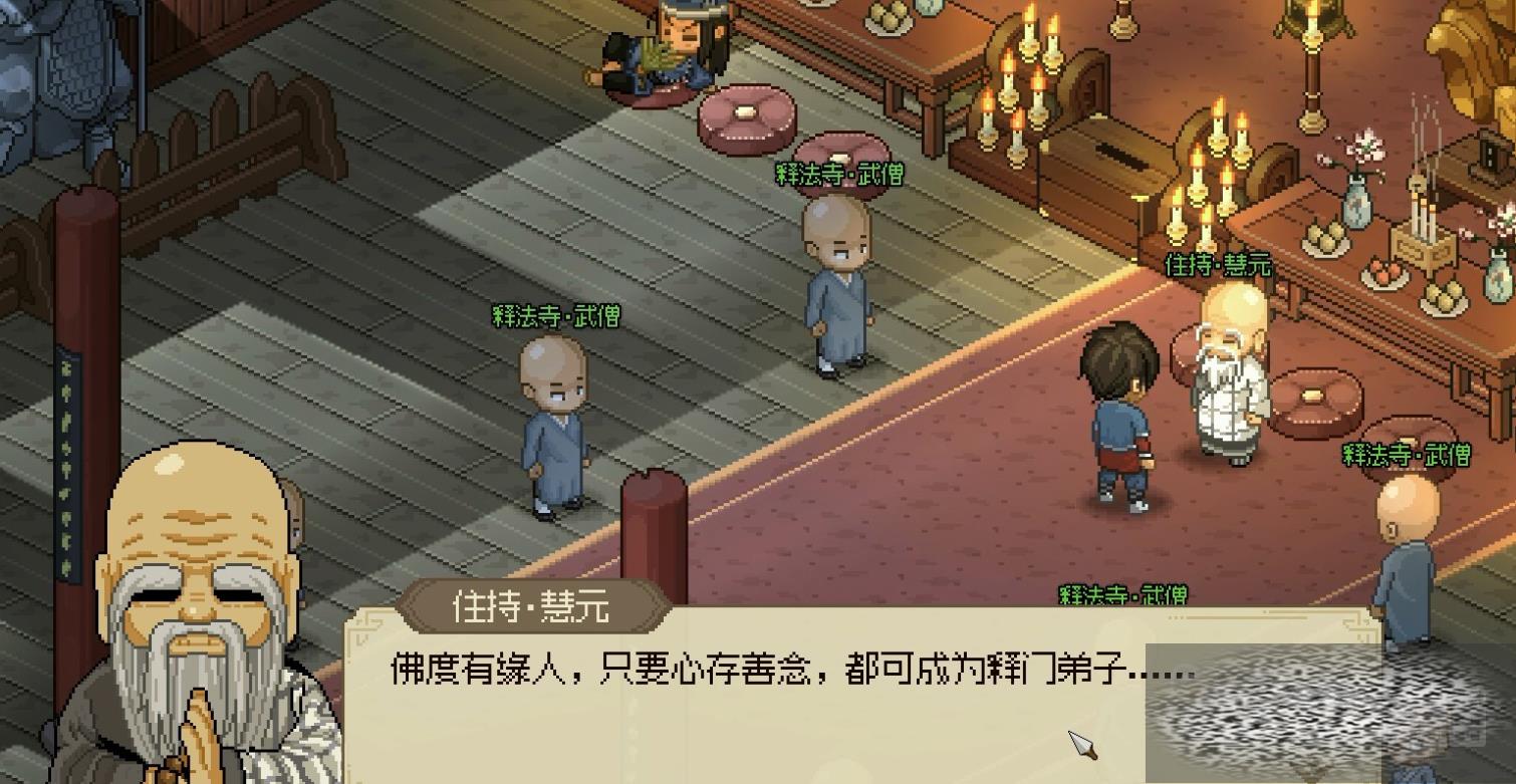 来到中州地区,前往地图上的释法寺,进入后我们直接找里面的慧元大师进行交谈并选择加入,大师会让我们选择俗家还是出家,如果选择出家的话队伍中所有队友的好感度就会清零并且直接离开,所以一定要记得选择俗家,选择完毕后就可以正式加入了。