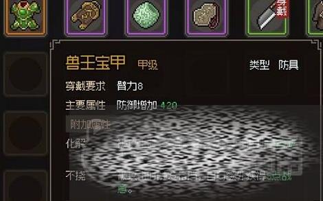 在使用这一个装备时还需要掌握技巧,例如在战斗的过程中可以通过侧面攻击,然后形成缴械效果。另外还可以直接产生一个封穴的作用。玩家别忘记还需要搭配一些装备,例如可以选择兽王宝甲。一旦在合理的搭配之后,就可以尽情的发挥武器的实力,这些就是大家所需要掌握的。